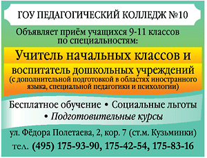 Помогите сделать портал лучше! Вы дозвонились до организации и вам ответели сотрудники «Педагогический колледж № 10»?