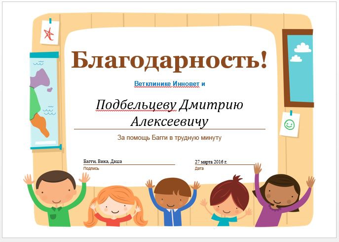 23 января 2013 г.Спасибо ветеринарной клиники Инновет.
