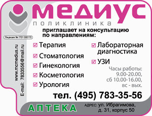 Время работыпн 09.00-20.00 вт 09.00-20.00 ср 09.00-20.00 чт 09.00-20.00 пт 09.00-20.00 сб 09.00-20.00 вс 09.00-20.00Официальный сайтmcmedius.ruТелефон+7 495 783-35-...