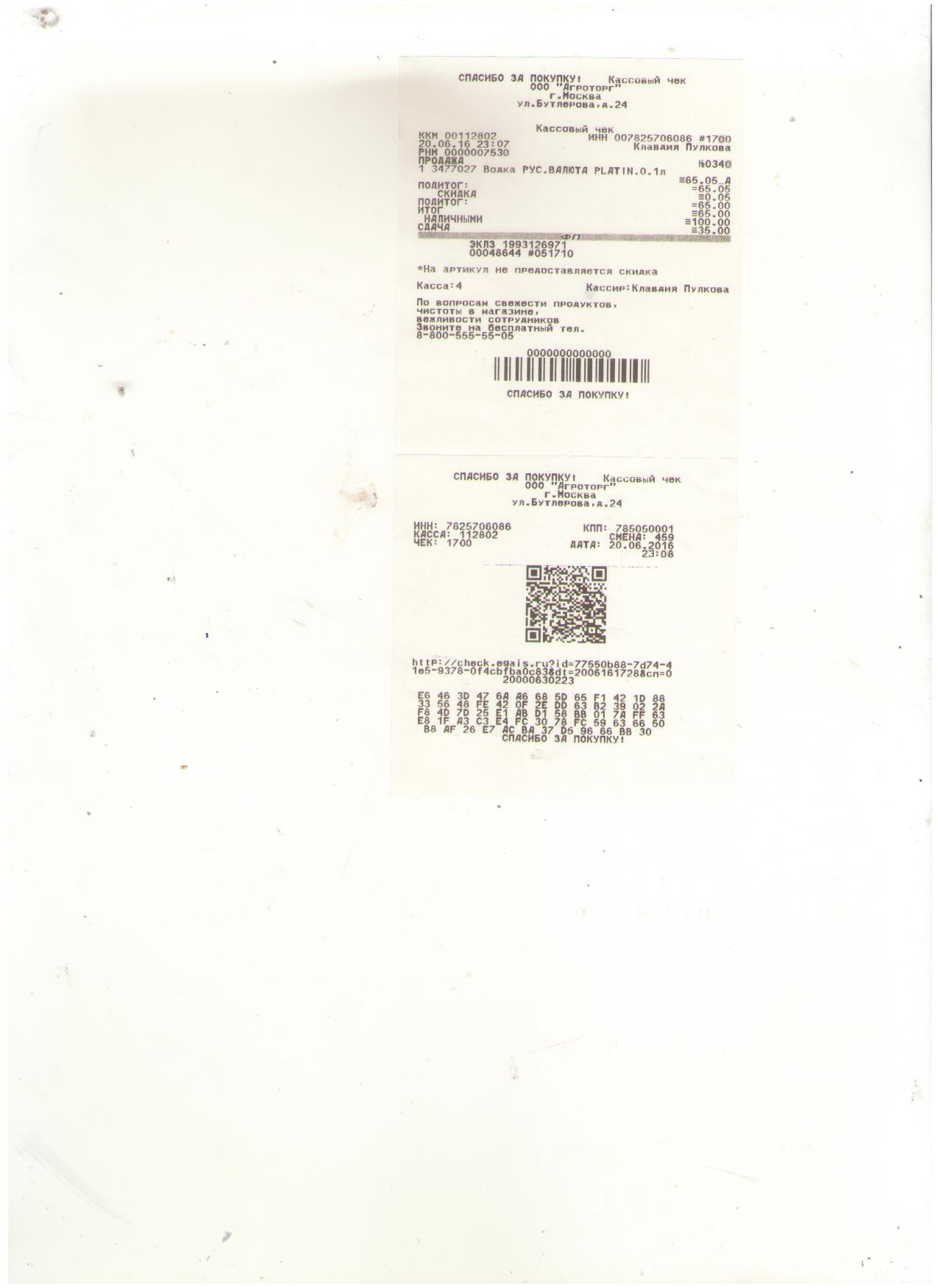 Прошу Вас принять меры к нарушению закона. Мой племянник Андрей, 1999 г. р., купил вечером в магазине ПЯТЕРОЧКА на ул. Бутлерова, дом 24, водку "Русская валюта" 0,1 л и выпил ее