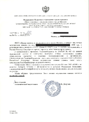 г. Москве", признает не действительными, в Реестре Роспотребнадзора не зарегистрированными, аттестация по ним не проводилась. Организация не является Центром гигиены и эпидемиологии в субъекте РФ, уполномоченным Роспотребнадзором на выдачу личных мед. книжек и ведение их реестра.