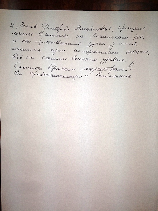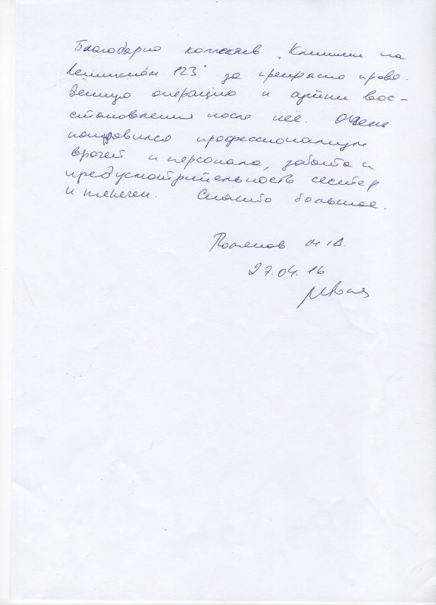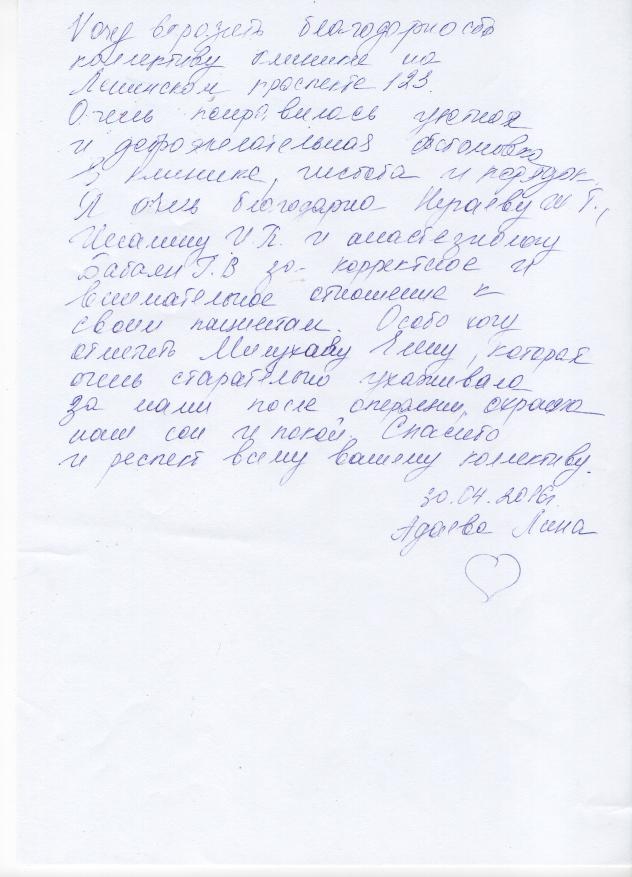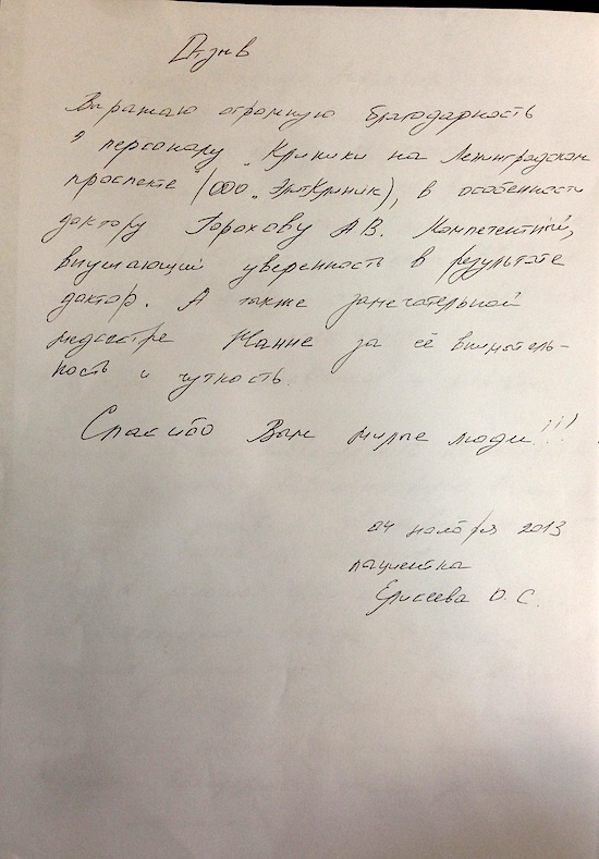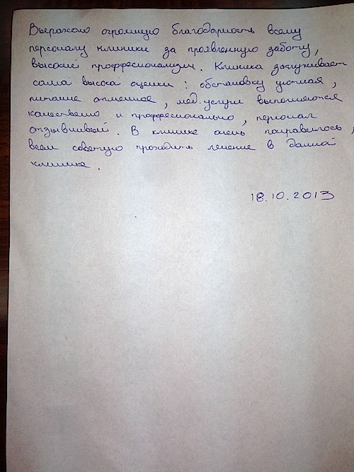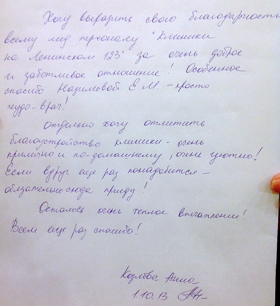 Благодарность Клинике!