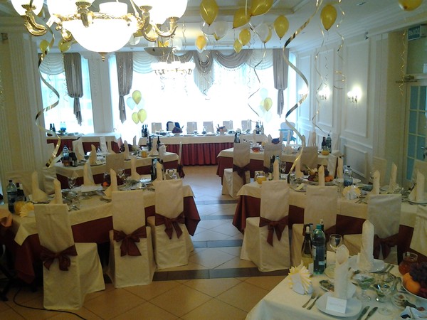 Внутри ресторана царит идеальная чистота. Классический интерьер подчеркнут скатертями кремового оттенка, позолоченными деталями, колоннами и шторами из дорогих тканей. Все выглядит лаконично, спокойно, бещ лишней перенасыщенности. Ресторан предлагает меню, смешанное из блюд европейской, узбекской, азербайджанской, русской кухонь.
