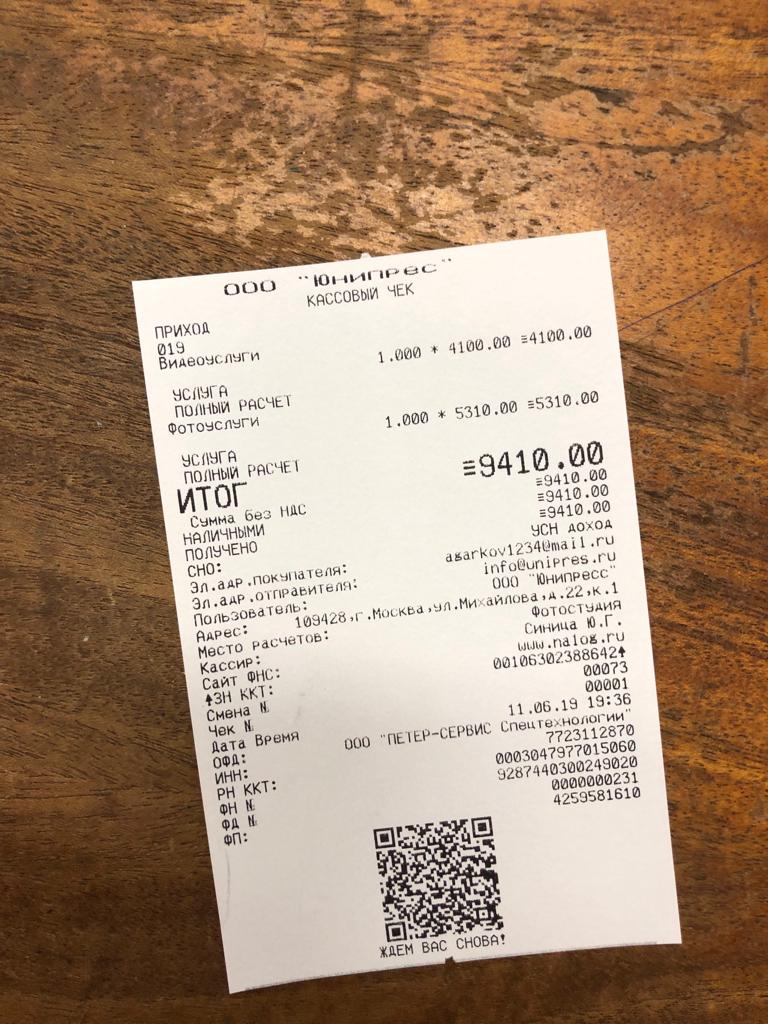 9 апреля 2019 г.Профессионально работают. Нет никаких к ним нареканий! Сделали все быстро, фото хорошие, материал весь отдали на флешке.