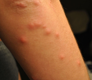 День добрый. Помогите с диагнозом. Сейчас нахожусь в США. На 2-й день появились высыпания на коже (внутренней поверхности правой руки) похожие на укусы клопов (возвышаются над поверхностью, не пузырькового типа, размером 3-5 мм, с покраснением, зуд). На следующий день (другой отель) такие же высыпания появились на левой руке. На следующий день спина, живот, правая сторона лица. Была небольшая температура на 3-й день. Из пищи: морепродукты и незнакомые продукты не употреблял. Аллергии не было. В водоёмах не купался. Подскажите, что это может быть? К какому специалисту следует обратится, какие анализы сдать. Ситуация усугубляется тем, что еще 2 недели не смогу вернутся в Россию. Прошу ответить по адресу: SluckiiEA@yandex.ru