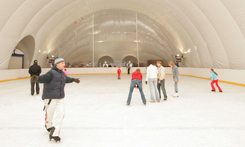 Ледовый дворец «Новокосинский» располагает крытым катком, размером 30 на 60 метров. Площадь покрыта искусственным льдом. Здесь имеются балконы для зрителей, просторный холл, подсобные и административные помещения. Каток предназначен для тренировок воспитанников Детско-юношеской Спортивной Школы и проведения выступлений и соревнований. В школе действует набор на отделения фигурного катания на коньках и хоккея с шайбой. Для посетителей оборудованы удобные теплые комнаты для переодевания. Занятия проводят высококвалифицированные инструктора и мастера спорта. Команды Ледового Дворца неоднократно занимали призовые места на турнирах разного уровня. Для желающих хорошо отдохнуть, в выходные дни каток открывается на проведение массовых катаний. Прокат снаряжения не предоставляется. Необходимо приходить с собственными коньками. Услуги заточки также нет. Вход платный. Детям предоставляется скидка на билет в размере 50% от стоимости взрослого. Играет музыка, присутствуют мягкое освещение, работает медицинский пункт. Восстановить силы можно в местном кафе с разнообразными горячими и холодными блюдами и напитками.