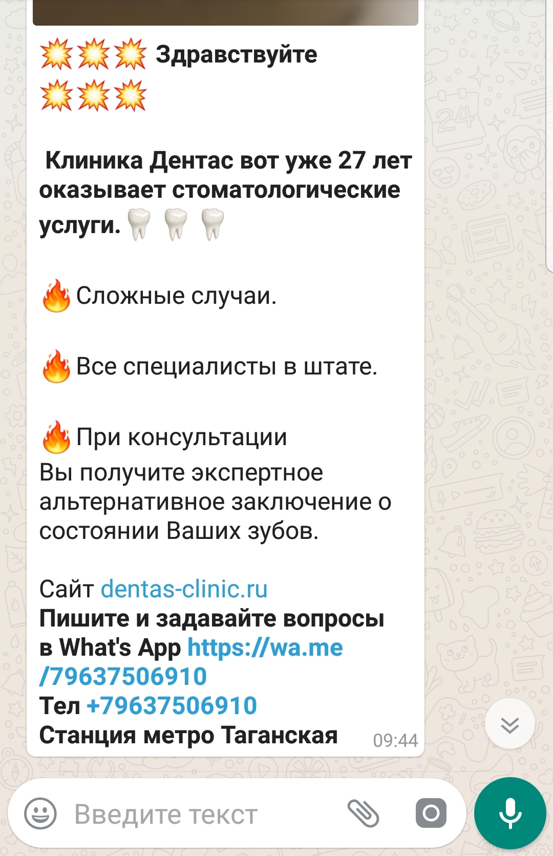 Эти отвратительные спамеры тратят полученные за кривое лечение зубов немалые деньги на кучу спама в групповых чатах WhatsApp. Горите в аду, криворукие коновалы!