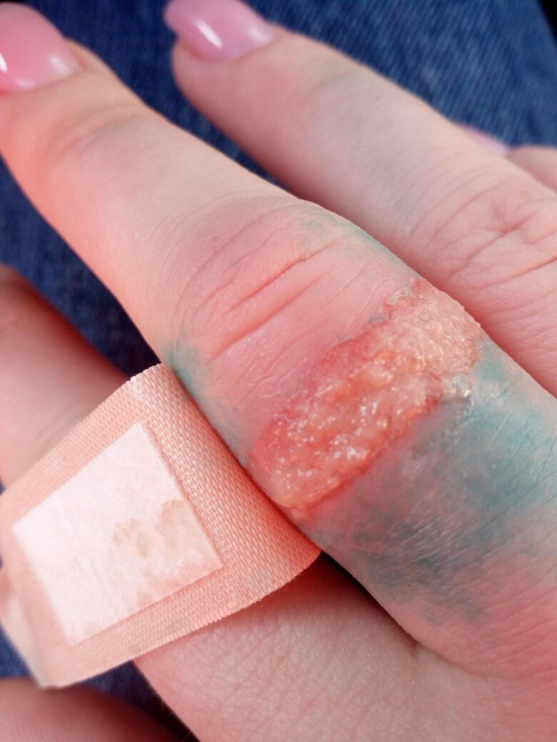 После повторной просьбы о помощи, врач взял мою руки и начал резко тянуть, выкручивать кольцо с пальца, при этом не использовал каких либо вспомогательных средств, например мыло или крем, чтобы облегчить скольжение. Палец начал синеть, от боли я начала плакать и просить остановиться, но врач продолжал экзекуцию. Пытка которую мне устроил врач сопровождалась - едкими комментариями, насмешками в мой адрес и криками - заткнись. Спустя пару минут истязаний, из под кольца пошла кровь, а палец стал черно-синего цвета. По совету медсестры кольцо решили срезать с руки при помощи щипцов. Срезание кольца прошло легко и быстро, но увидев свою руку после освобождения от оков, я пришла в ужас. Врач в попытке снять кольцо содрал мне верхний слой кожи на пальце! Из-за травмы которую мне нанес врач, я не могу теперь работать и заниматься обычными домашними делами. Сейчас на руке рана, которая очень сильно болит и в последствии может остаться шрам. Ушла я из больницы с рукой залитой зеленкой, вся в слезах и жуткой болью.