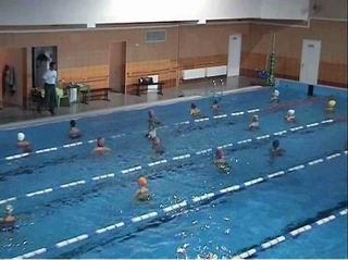 «Малая» ванна предназначена для детей и имеет размеры 16.7 на 8 метров. Глубина варьируется от 70 см до 1.1 метра. Она вмещает до 16 человек за сеанс. Температура воды и воздуха держится в пределах 30 градусов Цельсия. В наличии 8 душевых кабин и 2 раздевалки (для мальчиков и девочек) на 30 мест каждая. Вода в обоих бассейнах очищается озонированием.