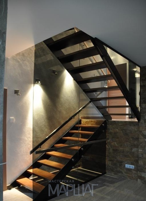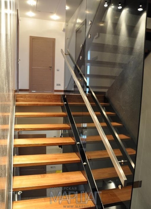 Лестницы, перила и ограждения из стекла, дерева, нержавеющей стали. Облицовка или отделка лестниц деревом и камнем. Сайт: www.marshag.ru.