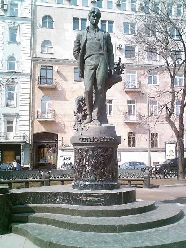 Памятник Сергею Александровичу Есенину на Тверской установлен в Москве к 100 – летию со дня рождения поэта в 1995 году, между драматическим театром им. Пушкина и зданием МХАТа им. Горького.