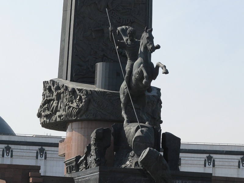 Статуя установлна на Поклонной горе Дорогомиловского района города Москвы (напротив здания Центрального музея Великой Отечественной войны, ул. Площадь Победы, д. 3). Добраться до объекта можо на автобусе (№№ 157, 205, 339, 818, 840, 91, Н2), маршрутном такси (№№ 10м, 139, 40, 474м, 506м, 523, 560м, 753м, 818) до остановки «Поклонная Гора»