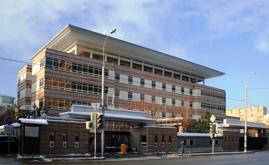 Многоэтажное здание Посольства Южной Кореи в Москве, площадью 24 тысячи квадратных метров, расположено по улице Плющиха, оно было построено в период с 2000 по 2003 годы.