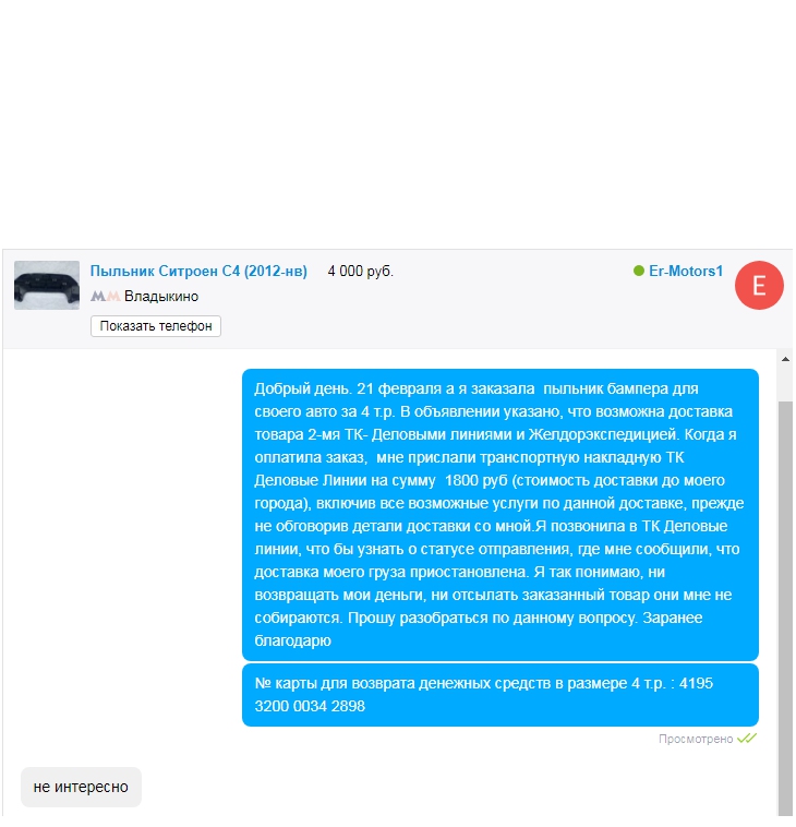 Совет для покупателей - НИКОГДА НИКОГДА НИКОГДА и не при каких условиях ничего не покупайте у этого продавца! Вас оставят без товара и с большим количеством негативных эмоций! Хамка- продавщица после циничных диалогов оставит вас ни с чем! Поберегите ваши деньги и нервы.