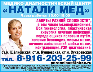 27 октября 2014 г.Моя дочь была у гинеколога в Натали-мед, потому что районная наша женская консультация- это хуже адовых мук.. Что очереди, что бестолковые врачи, что сложность с записью. В Натали-мед приятно удивило, что в частной клинике работают такие замечательные врачи, а мы сперва не доверяли, и, как оказалось, зря. Дочери сразу же назначили обследование, обнаружили кисту яичника и сразу направили на операцию. Если бы не врачи Натали-мед, с волокитой в районной ЖК могло бы быть поздно! Даже не знаем, как и благодарить!