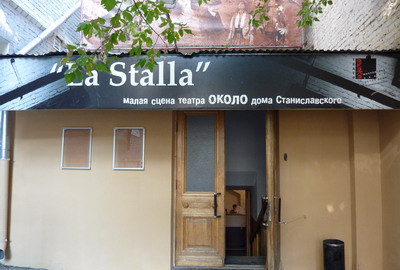 Название театр получил от расположения, так как он находится около Бульварного кольца, около Консерватории, около дома Станиславского. В народе театр так и называют ОКОЛО. Произошедший пожар в 2004 году лишил театр своей сцены, поэтому все спектакли идут на сцене «LA STALLA».