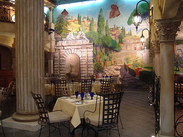 15 июня 2011 года у нас проходила там свадьба. К празднику готовились тщательно, поэтому ходить и согласовывать схему работы на банкете начали еще с марта месяца. Руководство ресторана в лице директора заверило нас, что повар у них самый итальянский, еда будет вкуснейшая домашняя, все с пылу с жару, в общем, гости останутся, ОЧЕНЬ довольны. Со своей стороны, мы предоставили полную информацию ресторану по рассадке гостей, так же: кто их них какой употребляет алкоголь, а так же выбрали меню из расчета 3 кг на человека стоимость в 1950 рублей/человека. Были сомнения относительно того, что еды будет слишком много, но нас заверили, что остатки (например, рыба, мясное) нам сложат аккуратно в контейнер и отдадут с собой. На деле оказалось следующее: 1. Еда к итальянской не имеет никакого отношения - безвкусно, моцарелла отвратительна, блюда были холодными. Есть это было невозможно. Вдобавок ко всему официантка, обслуживающая столик жениха с невестой и родителей откровенно нам хамила. Сваливала всю еду, которую приносила на подносах, в одну тарелку да еще и в в одну кучу. На просьбы обновить тарелки молча гордо удалялась. 2. Несмотря на список алкоголя по столам, расставлен он был абы как. В итоге, гостям, попросившим нас купить белого сухого, пришлось пить красное полусладкое. А белое сухое в это время стояло неизвестно где откупоренное. Так же, работники ресторана пообещали, что остатки алкоголя, который не выпьют гости, они нам вернут. Как бы не так: ВСЕ бутылки были откупорены. А это, без малого, более 60 бутылок. В итоге, мы не смогли забрать ничего, потому что элементарно не смогли найти даже пробки от них. 3. Банкет проходил в будний день (среда), поэтому когда подавали горячее, 30% гостей уже ушли, многие просто не кушали, но с собой нам в контейнеры положили какие то склизкие салаты. Ни горячего, ни пасты - НИЧЕГО. Резюме: хорошо подумайте прежде, чем заказывать банкет в этом ресторане.