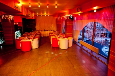 «Карамель» отделана в коралловых оттенках красного. По залу расставлены кожаные кресла полукруглой формы, распределены колонны с мозаичным покрытием. Окна огромных размеров доносят свет в каждый уголок помещения, создают ощущение простора, свободы. В будничные дни вместительность ресторана составляет 60 персон. С банкетной расстановкой столов количество присутствующих увеличивается до доброй сотни. Имеется качественное оборудование света и звука, позволяющее проводить мероприятия высокого класса. Возможно проведение вечера с караоке.