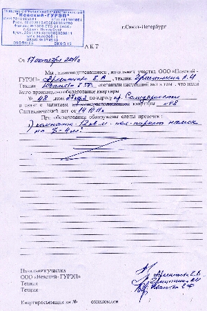21 мая и 14 октября 2011 – 2 раза заливало мою квартиру (туалет, прихожую, кухню и комнату). Причиной были засоры фановой трубы в квартире № 41 – ниже этажом, что утверждали в обоих случаях сантехники.