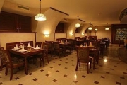 Ресторан украшен символичными витражными окнами, обставлен массивной мебелью из качественного дерева, окрашен в кремовые оттенки. Выдающейся деталью интерьера стали ставни ручной работы. «Витраж» смешал стили итальянских кафе и английских баров. Стойка с высокими стульями подойдет тем, кто любит уединяться в мыслях за напитками. Остальные могут расположиться за уютными столиками с нежной сервировкой. Днем в ресторане не курят и не пьют крепкий алкоголь. Вечером «Витраж» может превратиться и в банкетный зал с шумом, танцами, песнями, и в концертную площадку с инструментальной музыкой.