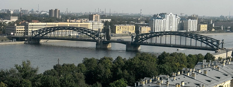 Большеохтинский мост в Санкт-Петербурге через реку Неву. Построен по проекту инженеров Г. Г. Кривошеина, В. П. Апышкова, П. М. Шелоумова, С. П. Бобровского, Г. П. Передерия, открыт 26 октября 1911 года. Связывает район Малая Охта (Красногвардейская площадь) с историческим центром города (по трассе Тульской улицы).