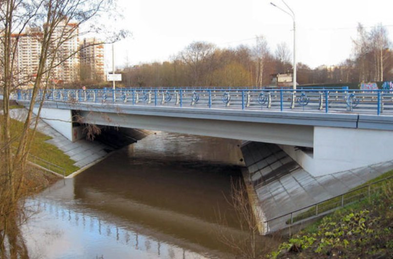 Мост установлен через реку Оккервиль по улице Ворошилова в Невском районе города Санкт-Петербурга. Добраться до объекта можно на автобусе (№№ 12, 161) до остановки «Ворошилова, д. 9»; на автобусе (№ 169) до остановки «проспект Пятилеток, д. 20»; на автобусе (№№ 118, 169, 191), троллейбусе (№№ 28, 33), маршрутном такси (№№ 102, 12, 155а, 209, 254, 269, 284), трамвае (№№ 27, 65, А) до остановки «Метро Проспект Большевиков» или на метро до станции «Проспект Большевиков», затем – пешком около 1,5 км.