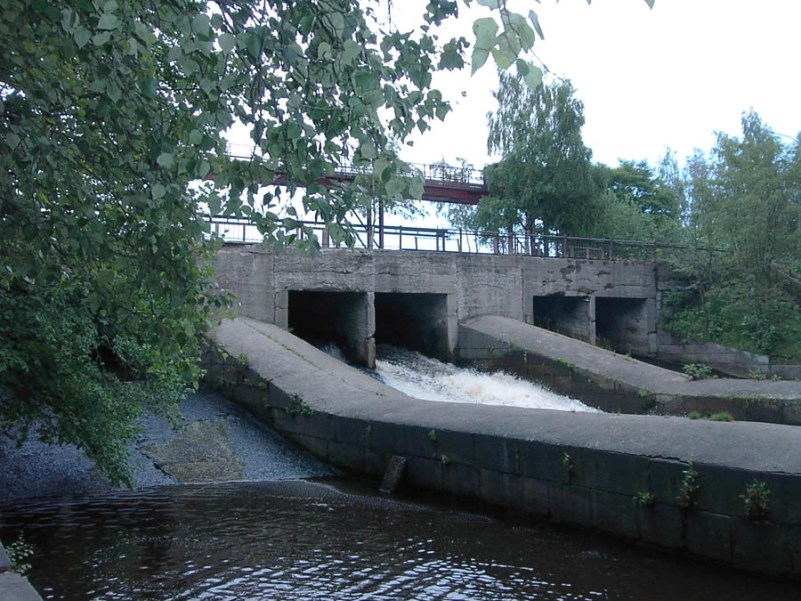 Плотина возведена на реке Охта по улице Коммуны в Красногвардейском районе города Санкт-Петербурга. Добраться до объекта можно на автобусе (№№ 164, 168) до остановки «Химиков (ул. Коммуны)»; на автобусе (№№ 102, 103, 153, 168, 37), маршрутном такси (№№ 102, 397, 92) до остановки «Шоссе Революции (ул. Коммуны)».