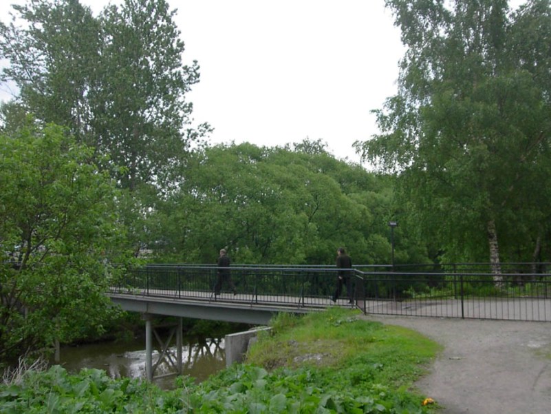 Мост установлен через реку Оккервиль Красногвардейского района города Санкт-Петербурга (между ж/д магистралью и Заневским проспектом). Добраться до объекта можно на автобусе (№№ 123, 168, 21, 24, 2730, 4МА, 4М, 5, 77, 82, 92), троллейбусе (№№ 1, 22), маршрутном такси (№№ 167, 187, 32, 322, 369, 397, 401) до остановки «Метро Ладожская (Заневский проспект)» или на метро до станции «Ладожская». Рядом находится ж/д станция «Ладожский вокзал».