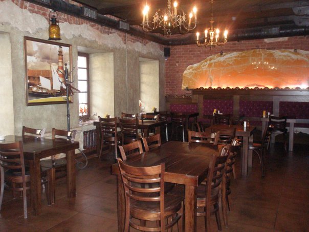 «Гинтарас» означает «янтарь». Как и благородная субстанция, заведение выглядит просто, но чарующе красиво. Интерьер не перегружен, хотя и изобилует мелкими деталями. Два зала уставлены мебелью из натурального дерева, белые потолки посечены балками, симметрично развешены антикварные люстры. Все продуманно и точно. Обстановка равно подходит для праздников, бытовых ужинов, семейных обедов, романтических встреч и тихих или шумных дружеских посиделок.